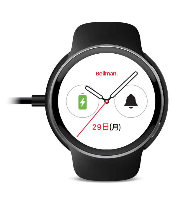 時計の文字盤にあるバッテリーインジケーターが緑色に点灯すると、充電中であることを示します。フル充電には最大2時間かかる場合があります。
