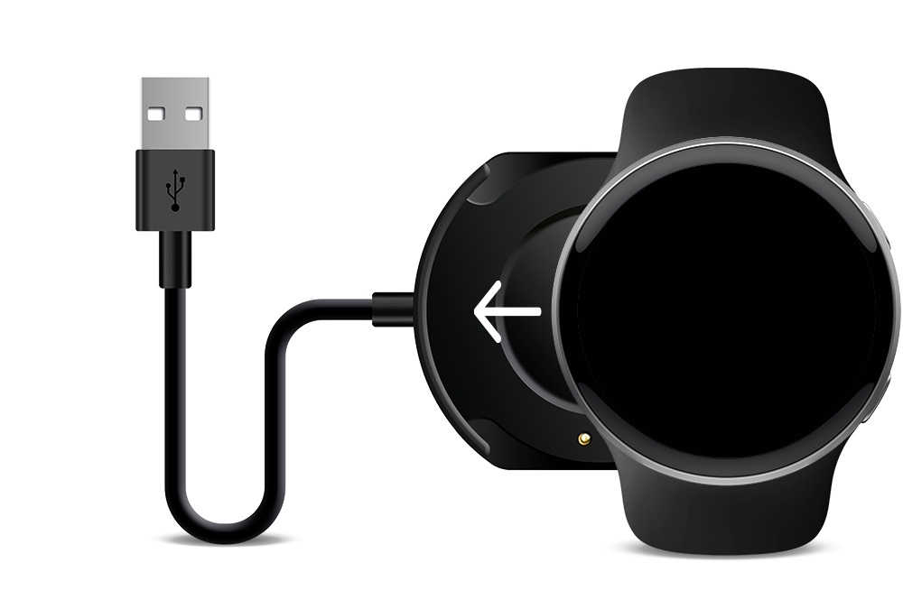時計を充電ドックに取り付け、充電端子が 位置合わせされることを確認してください。自動的に充電が開始されます。