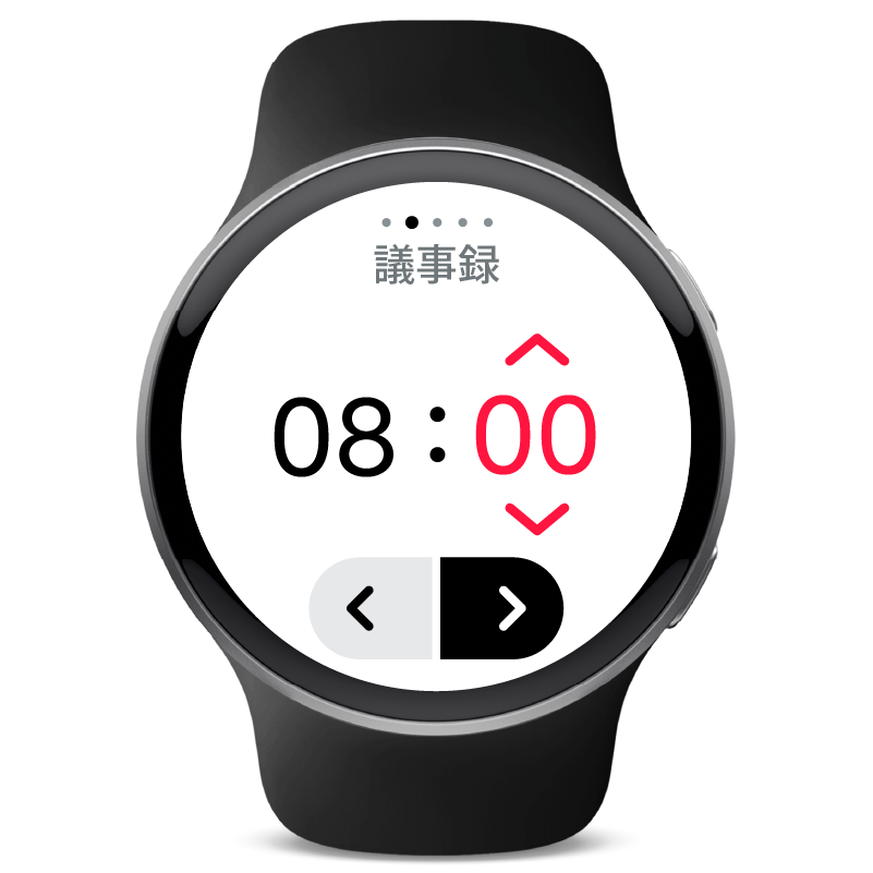 時間または分を選択し、赤い矢印をタップして時間を調整します。次へ icon-next-button.svg をタップして年を設定します。