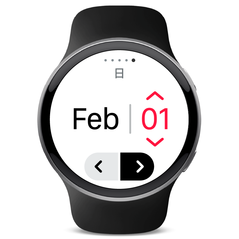 月または日を選択し、赤い矢印をタップして日付を設定します。 icon-next-button.svg をタップしてインストールを完了してください。