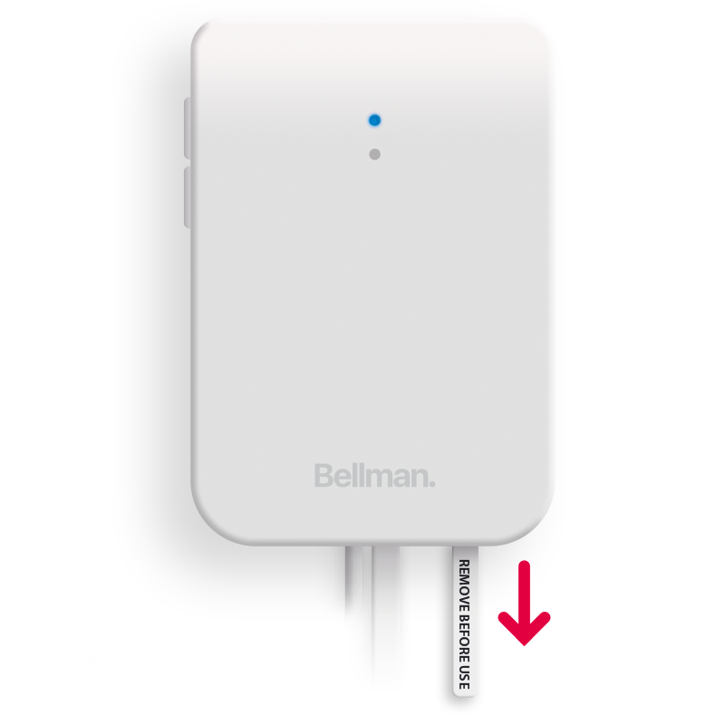 Bridgeを箱から取り出し、バッテリーの引きタブを外して開始します。上部のLEDが青色で点滅し始めます。