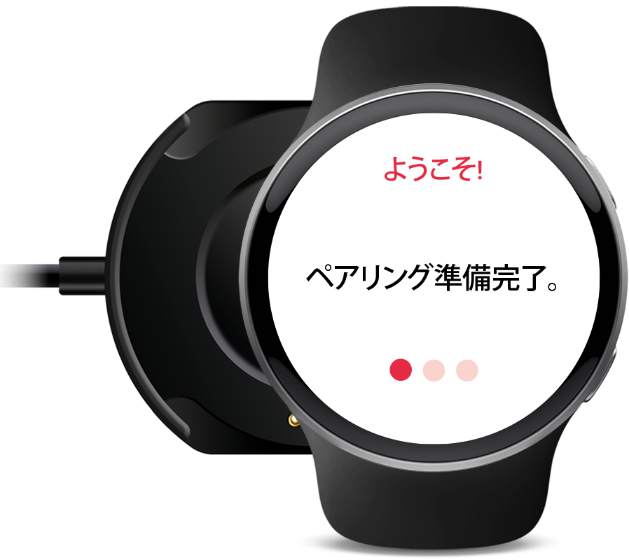 時計の包装を開け、充電器に15分間置いてください。充電器から外し、言語を選択すると、ペアリングの準備が整います。