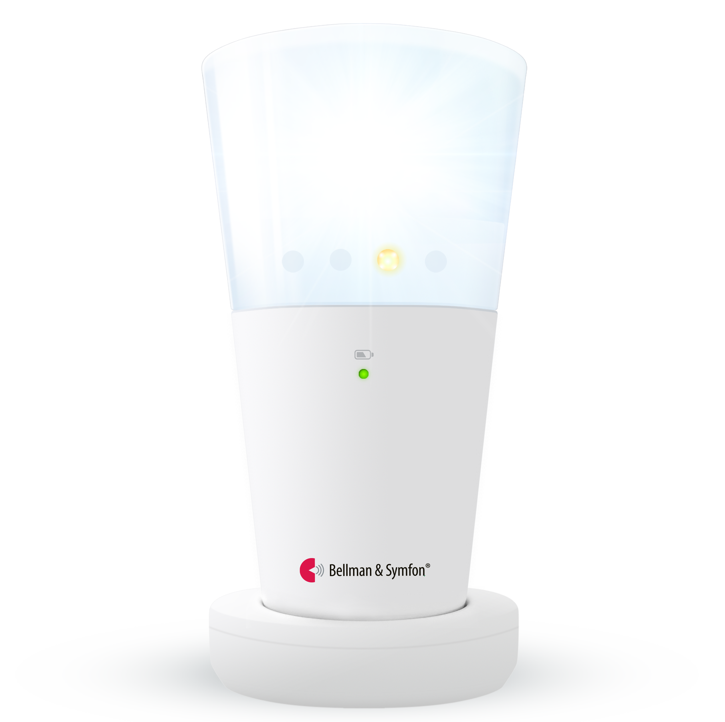 黄色のLEDが点灯し、受信機の種類に応じて音、点滅、または振動が始まります。