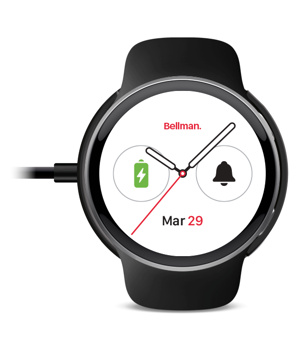 Fixez votre montre sur le socle de chargement en veillant à ce que les bornes de chargement soient alignées. Le chargement démarre automatiquement.