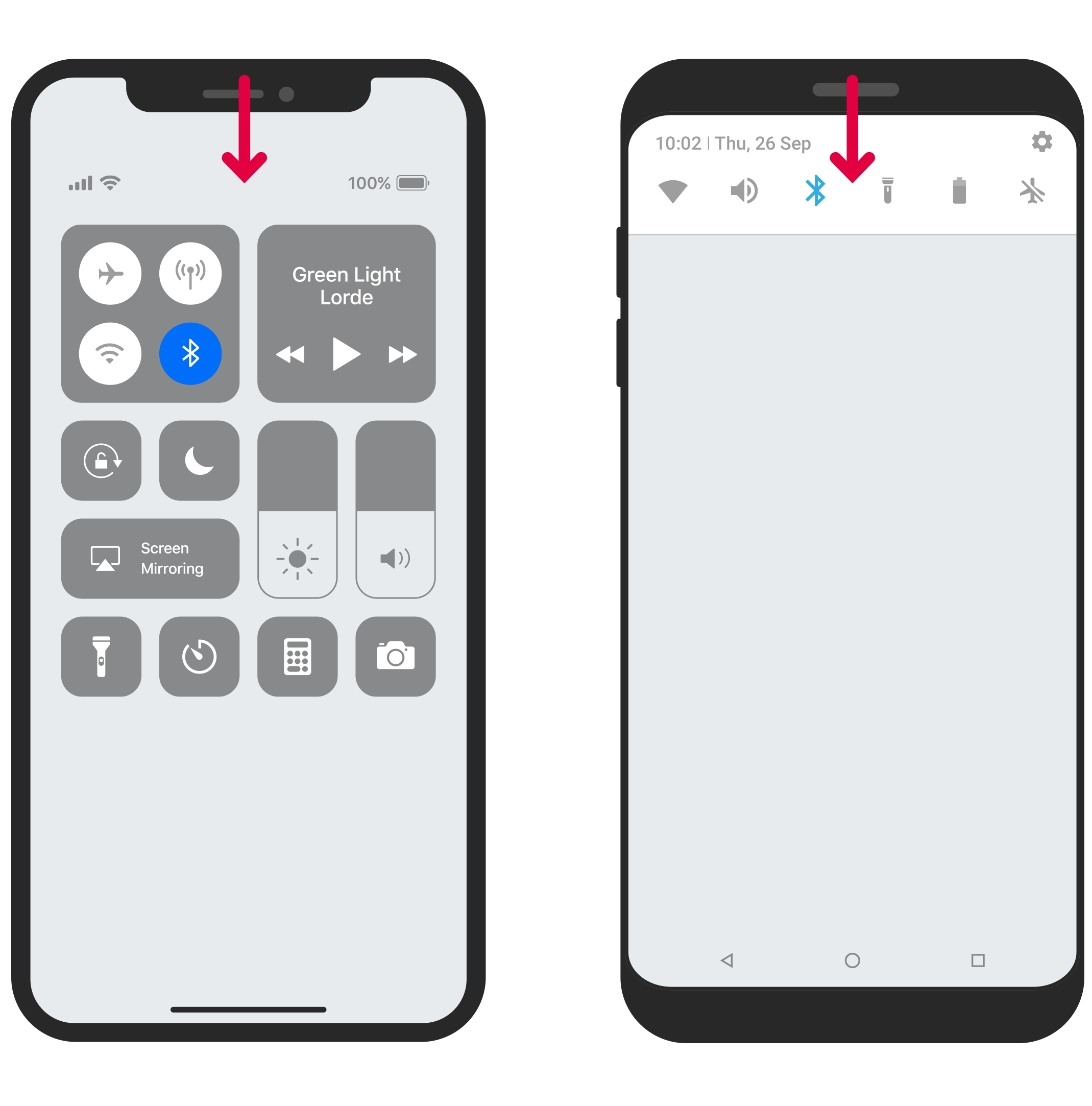 Balayez l'écran du haut vers le bas et appuyez sur l'icône Bluetooth.