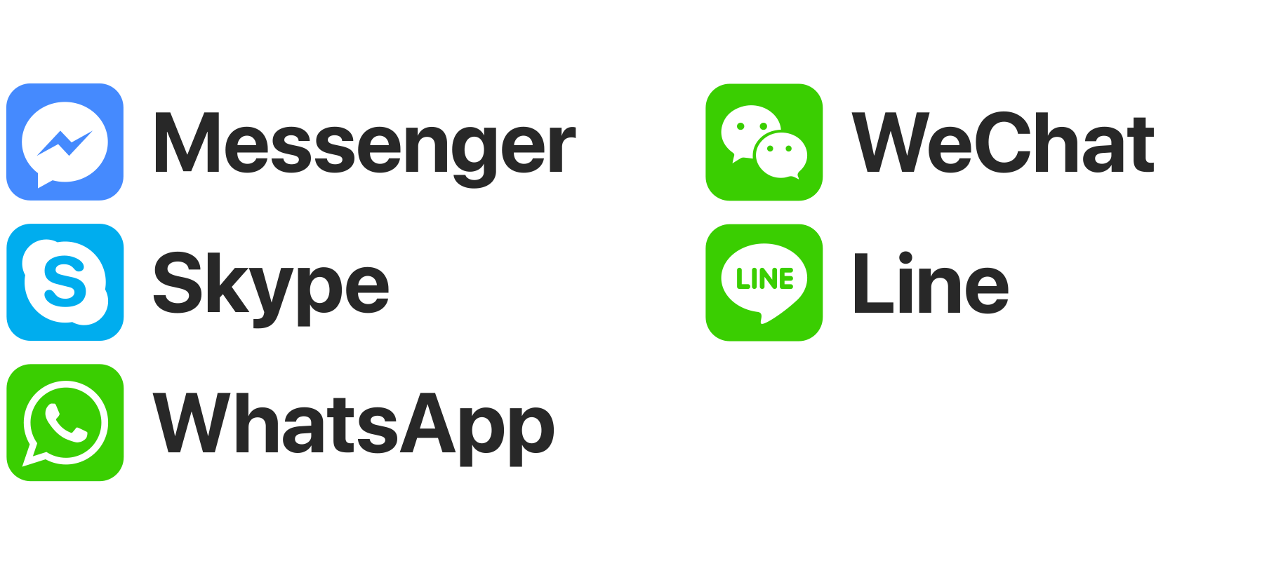 Mange bruker i dag meldingsapplikasjoner til å chatte og ringe. Visit-appen har innebygd støtte for disse applikasjonene, og varsler deg når du mottar et telefonanrop, en videosamtale eller en melding fra Messenger, Skype, WhatsApp, WeChat og Line.