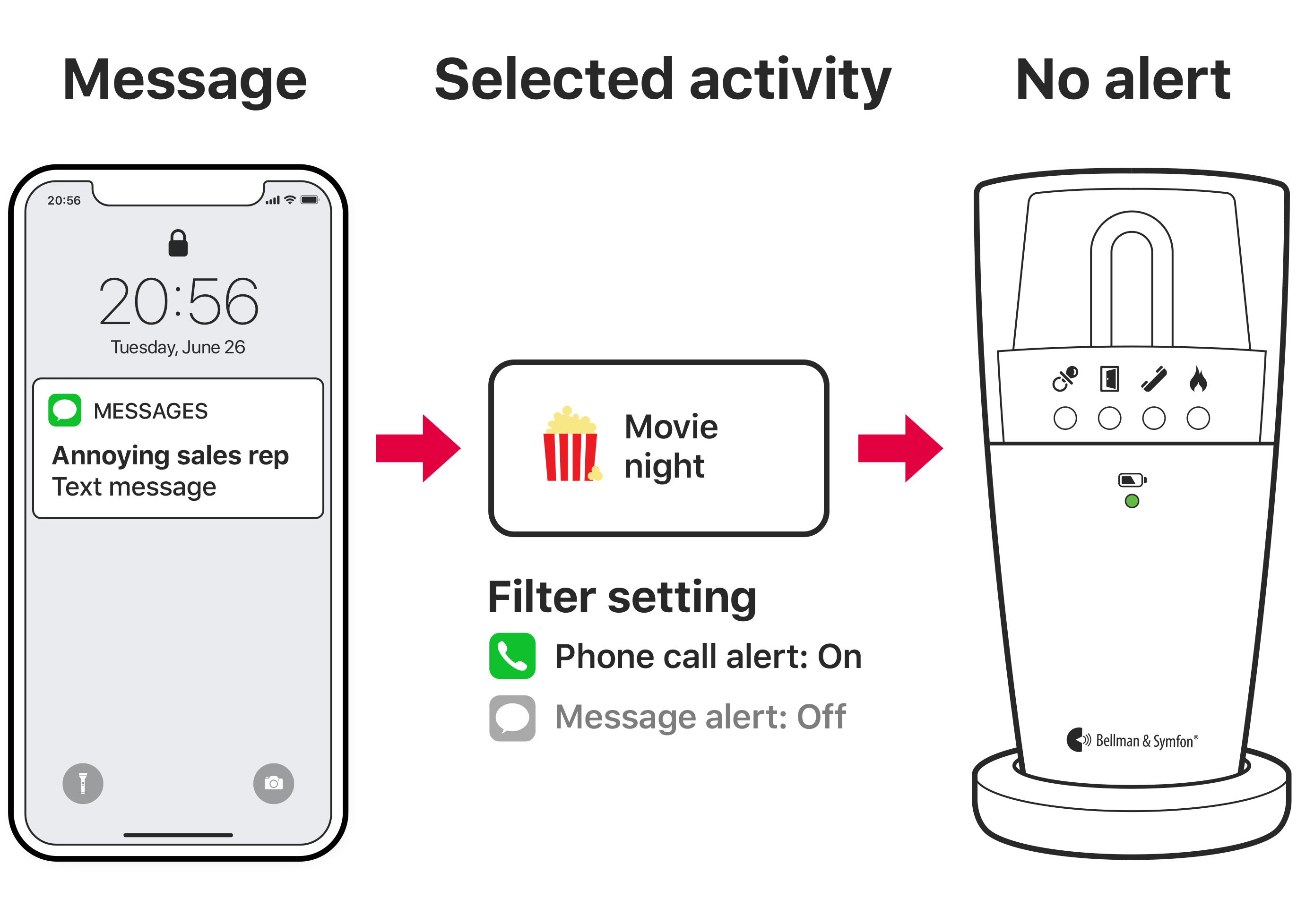Med denne aktiviteten varsler Visit bare for meldinger. Velg denne aktiviteten for eksempel mens du spiser middag, slik at du ikke trenger å besvare oppringninger mens du spiser. Visit varsler deg bare: