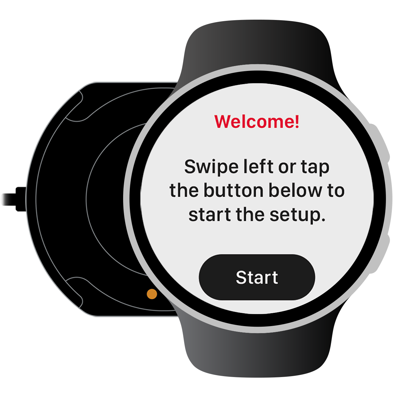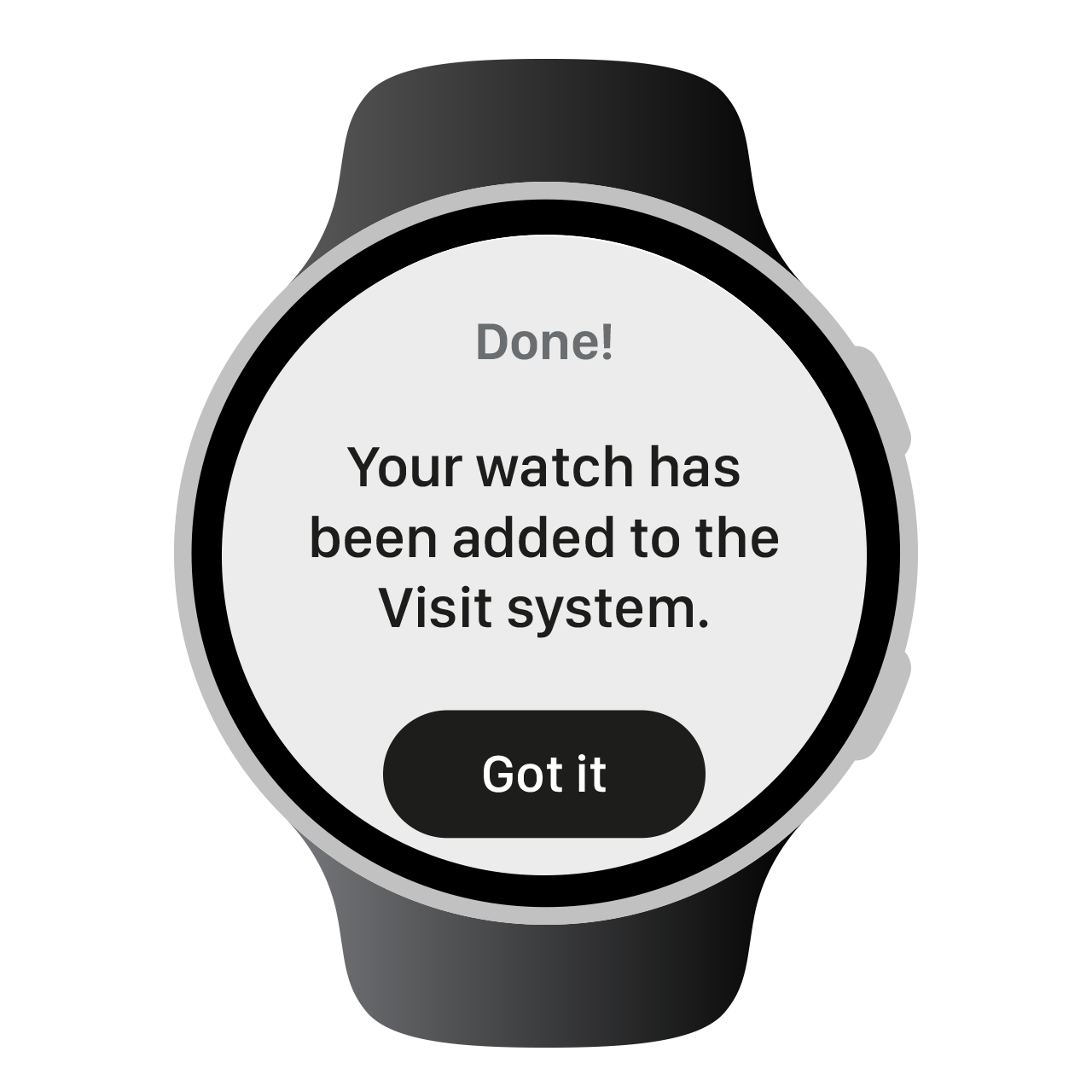 When you turn on the watch for the first time or reset it, either use the watch on-screen guidance or follow the steps below to pair it to your Visit system. Before you begin, make sure the units are close to each other.