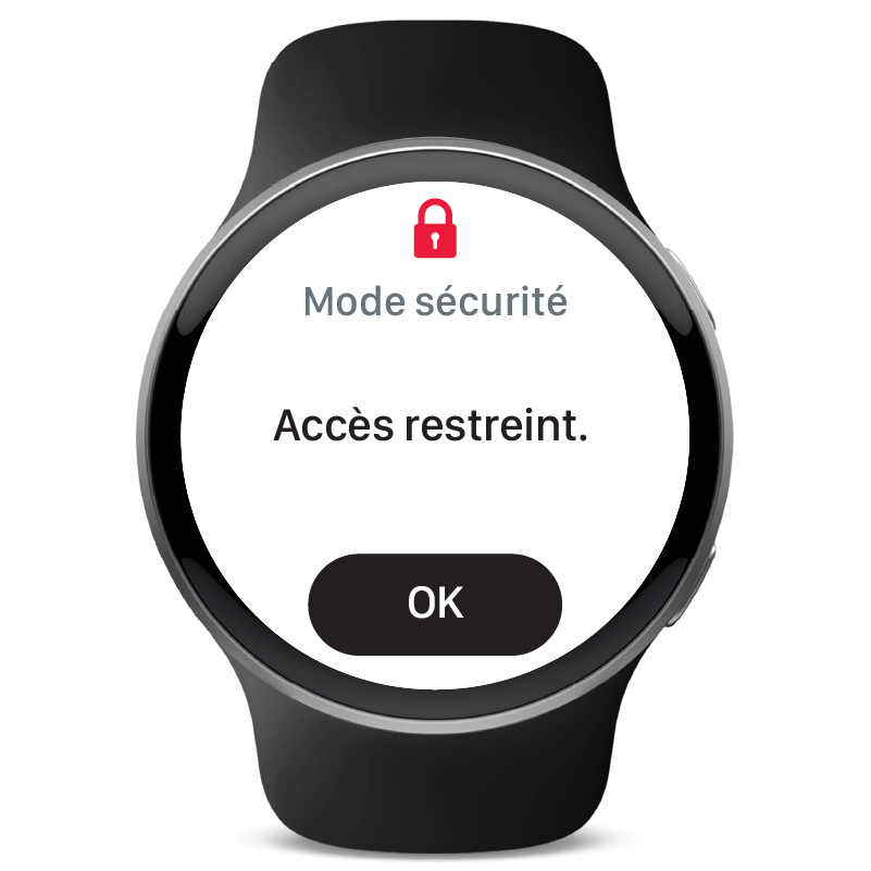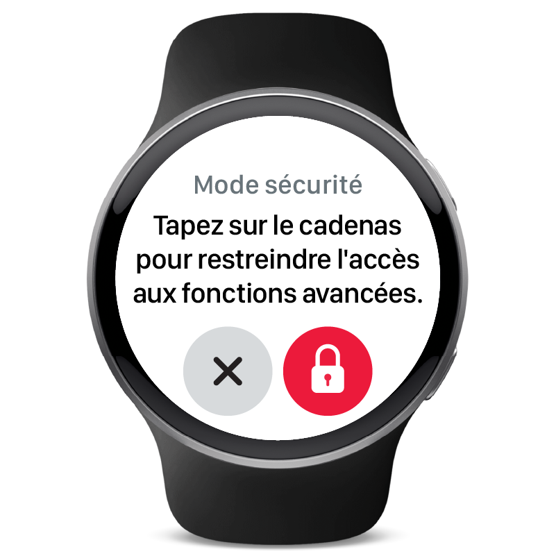 Lorsque le Mode sécurité est activé, une boîte de dialogue s'affiche si vous essayez d'accéder à des fonctionnalités avancées.