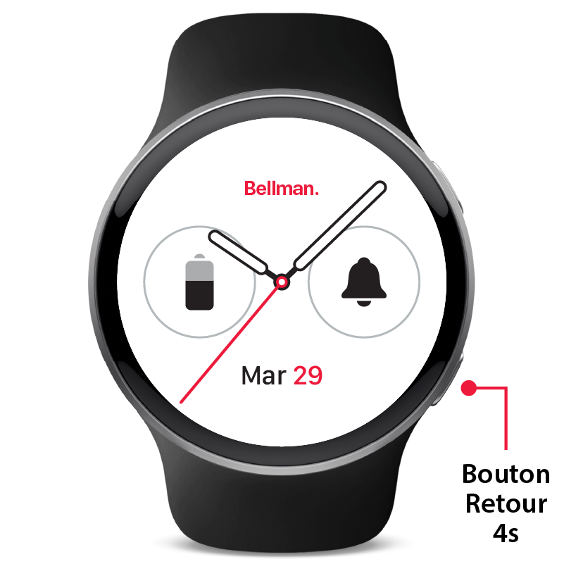 Pour signaler votre présence, maintenez la bouton Retour enfoncée pendant environ 4 secondes. Les récepteurs Visit installés dans votre domicile émettront un signal sonore, clignoteront ou vibreront pour avertir les membres de votre famille.