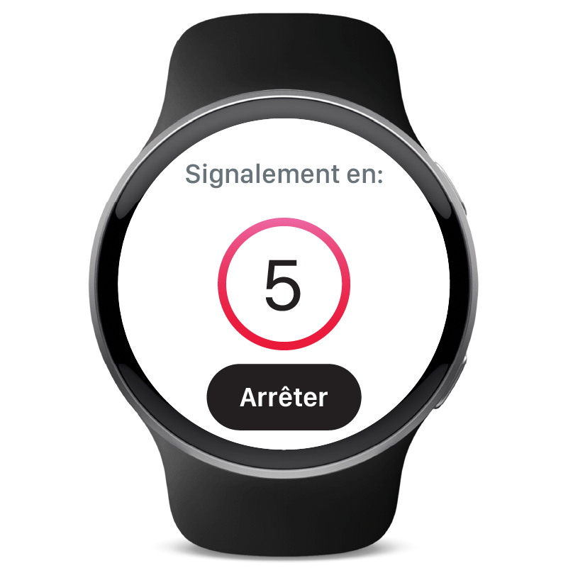 Appuyez sur Arrêter ou sur n'importe quelle touche avant que le compte à rebours n'atteigne 1 pour annuler et revenir au cadran de la montre.