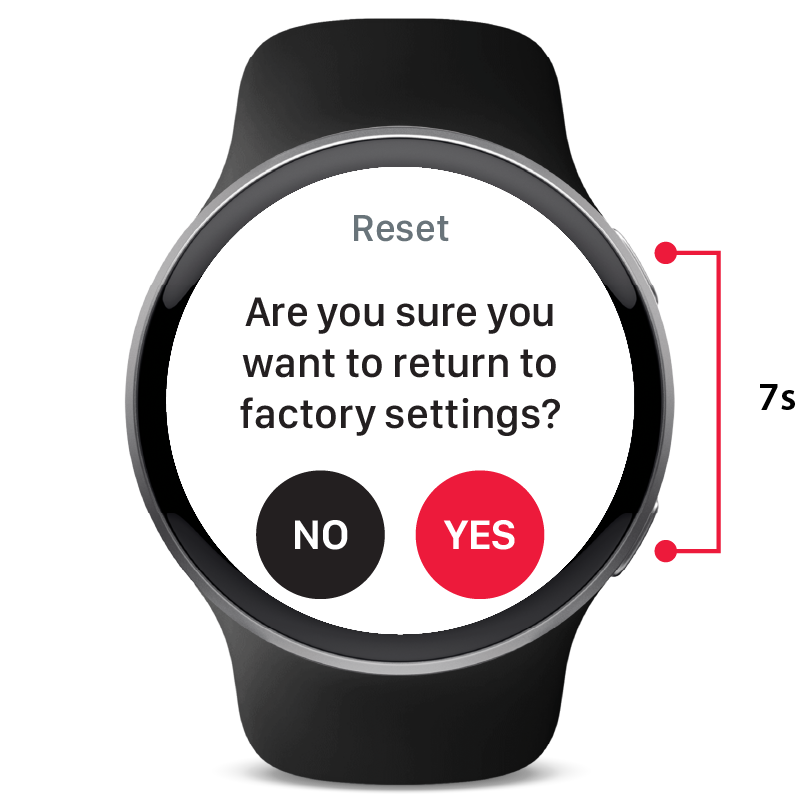 Hold down both keys for 7s to initiate a factory reset. Tap YES to confirm. The current pairing data will also be removed.
